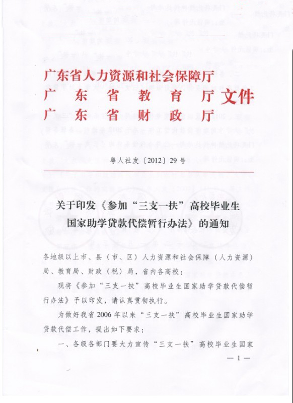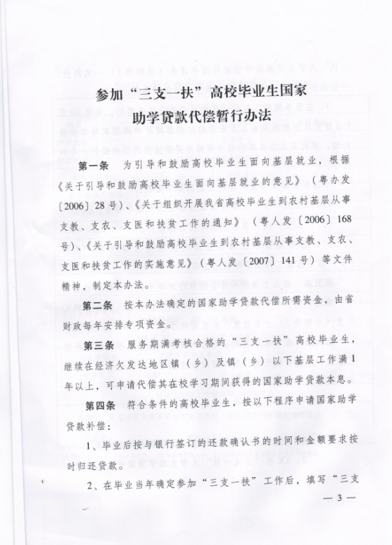 参加“三支一扶”高校毕业生国家助学贷款代偿暂行办法