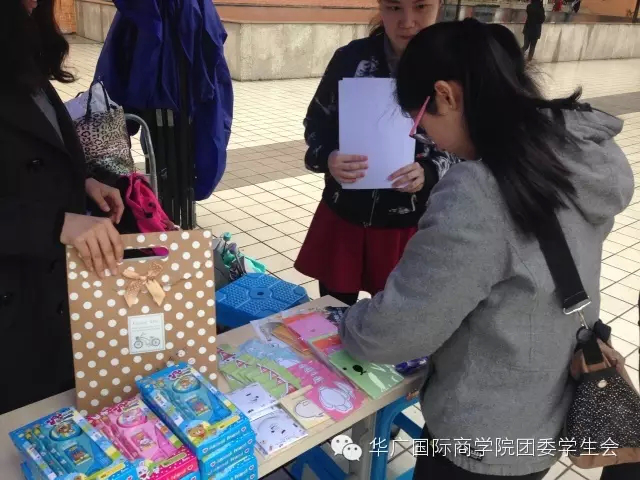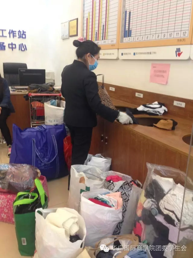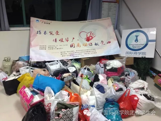 为进一步推动雷锋月活动的开展,弘扬中华民族传统美德,国际商学院团委实践部的全体成员于2016年3月24日在图书馆广场开展了主题为“捐衣筑爱,温暖华广,国商助你献爱心”的旧衣捐赠活动。