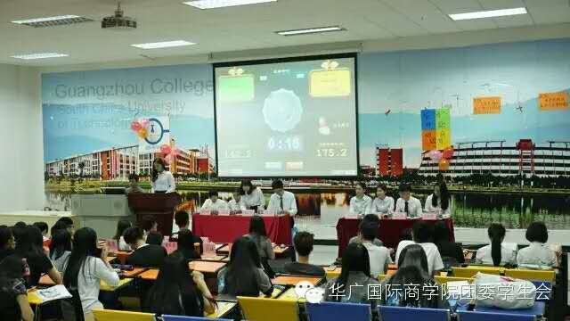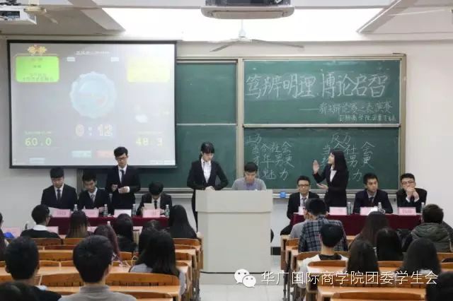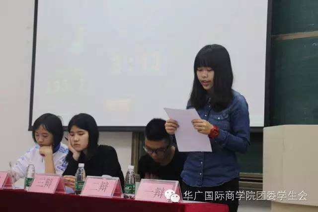 2016年3月24日星期四晚上19点,华南理工大学广州学院国际商学院“笃辨明理,博论启智”新生辩论赛之表演赛在A5-108隆重拉开帷幕!国商团委学生会主席宗蓓雯,副主席张宇轩,常委林洁慧来观赏表演赛。