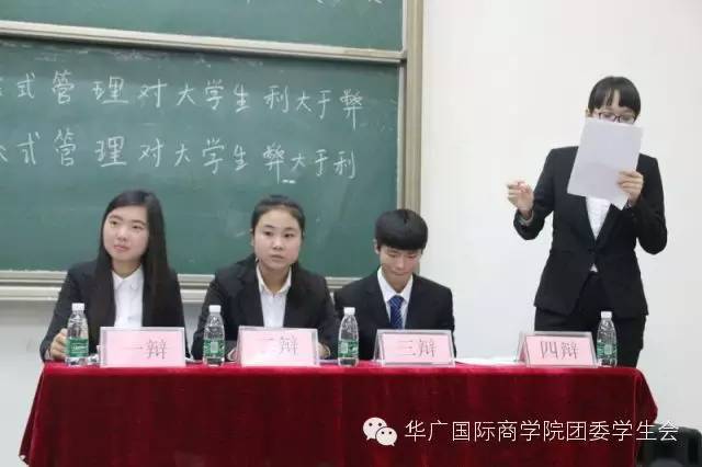 第一场出场的是国际会计班和双语会计班,双方围绕宽松式管理对大学生的利弊展开激烈讨论,最终以一票之差险胜,反方四辩获得最佳辩手。