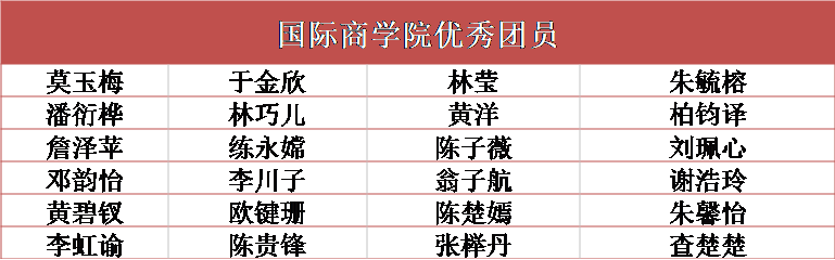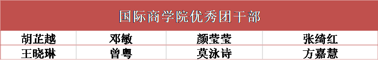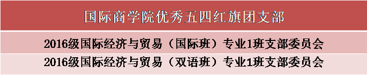 再次热烈庆祝国际商学院以上两个团支部荣获“五四红旗团支部”,希望其他团支部们能够再接再厉,向这两个团支部学习,增强集体意识和荣誉感。为创造优秀团支部不断奋斗!