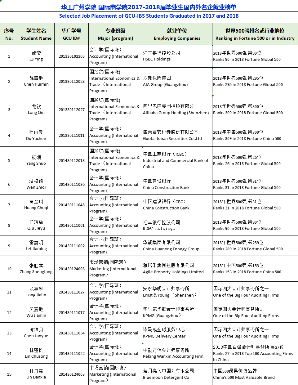 国际商学院2017-2018届毕业生国内外名企就业榜单