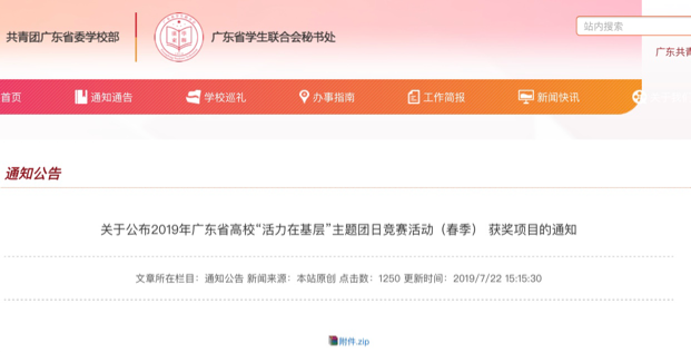 中国共青团广东省委员会公布了2019年广东高校“活力在基层”主题团日竞赛活动(春季)省级优秀项目名单,国际商学院2018级会计学(双语注会班)专业2班团支部成功被选入省级“百优”项目名单中。