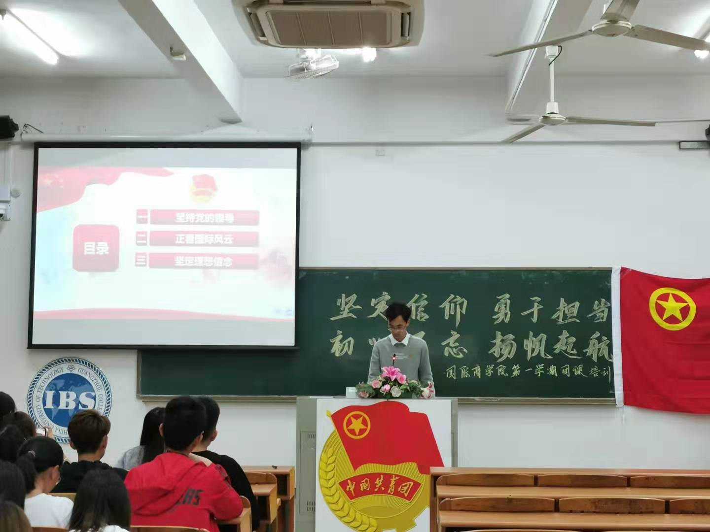 国际商学院于2019年11月24日(周四)19:30在A1-208如期开展了第一学期第二课团课培训。我们有幸邀请到了国际商学院团委副书记李佳霖出席了本次团课活动。