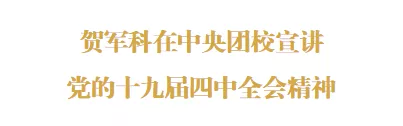 11月27日下午,共青团中央书记处第一书记贺军科为中央团校在训学员和教职员工宣讲党的十九届四中全会精神。宣讲以“坚持中国特色社会主义群团发展道路,提高共青团对国家治理现代化的贡献度”为主题,从深刻理解全会重大意义、倍加珍惜实践探索成果、坚持巩固制度体系优势、深入开展制度自信教育、准确把握群团组织职责定位、努力提升共青团贡献度等六个方面与大家进行了交流。