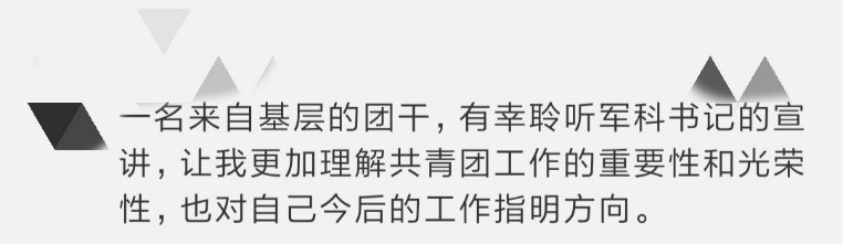 通过宣讲会,我们将会更加坚定对党忠诚,更加坚定了对坚持走好中国特色社会主义道路的道路自信,更加坚定了对战略布局的发展自信。相信团组织,相信党,坚定不移地跟着党和团组织走。我们也都相信:春有期望和辉煌,夏有火红和热情,秋有金黄和成熟,冬有雪白和宁静,祖国四季皆似锦!