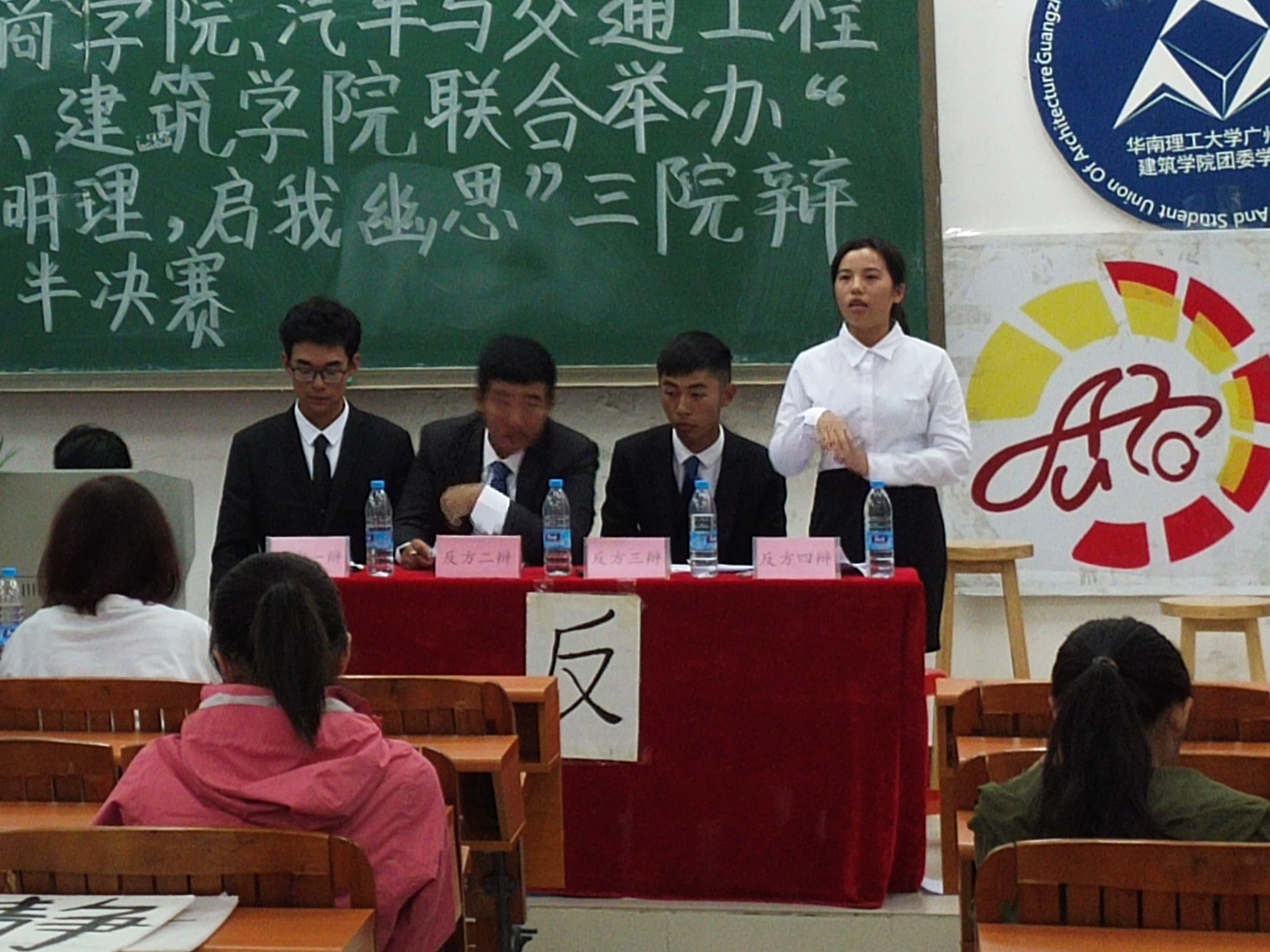 汽车与交通工程学院、国际商学院、建筑学院三院联合举办的“辩以明理,启我幽思”趣味辩论赛半决赛第一场于11月26日19:00在教室A5-202顺利举办。
