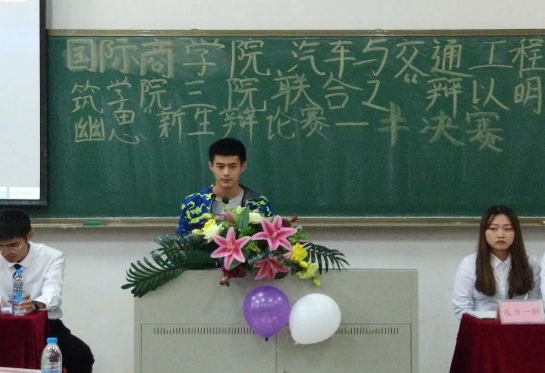 由国际商学院、汽车与交通工程学院、建筑学院联合举办的“辩以明理,启我幽思”三院新生趣味辩论赛半决赛于10月28日16:15—17:30在A1-202顺利举行。