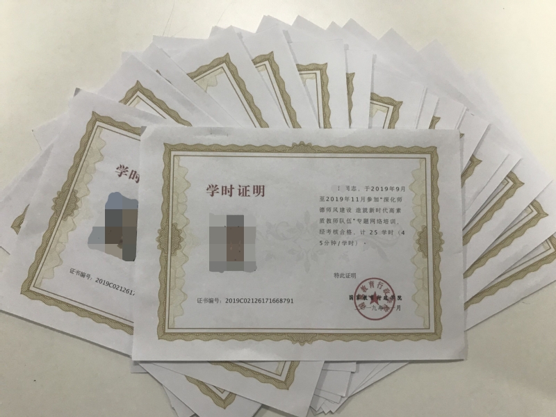 培训班教师培训学时证明(刘广 摄)