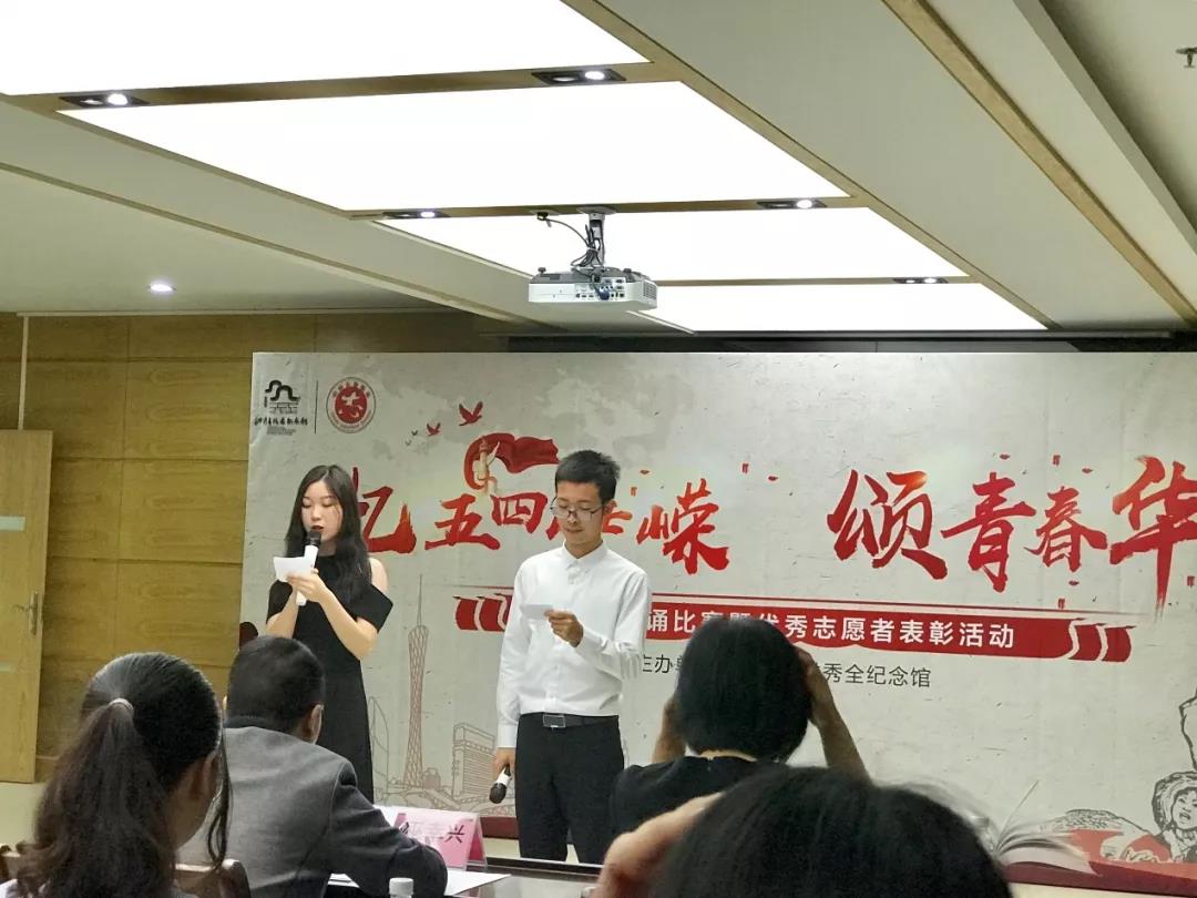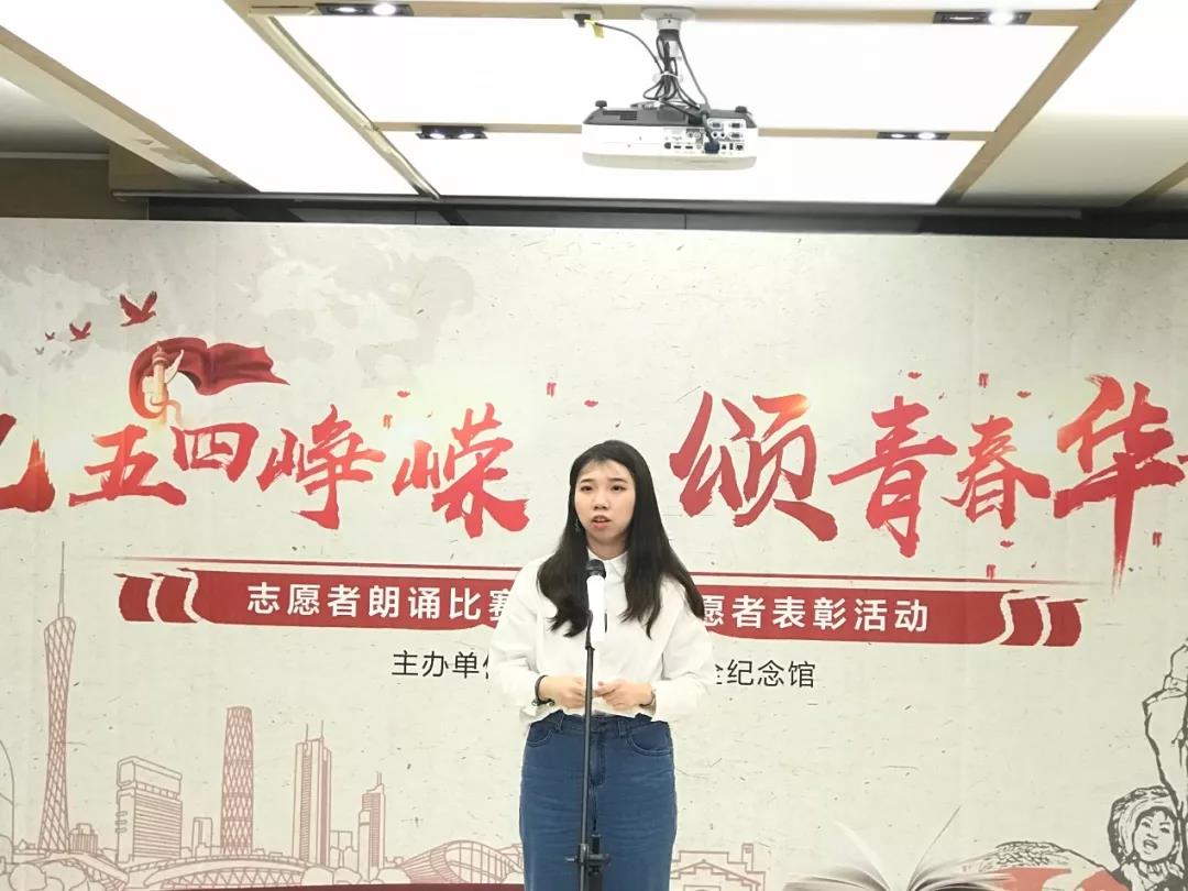 “忆五四峥嵘,颂青春华章”朗诵比赛结束后,志愿者服务分队队员卢欣悦作为华南理工大学广州学院国际商学院志愿者服务分队志愿者代表被邀请上台发言。发言中提到个人以及团队在故居、纪念馆志愿者活动时的感想和收获,感谢洪秀全纪念馆一直以来的支持和合作。