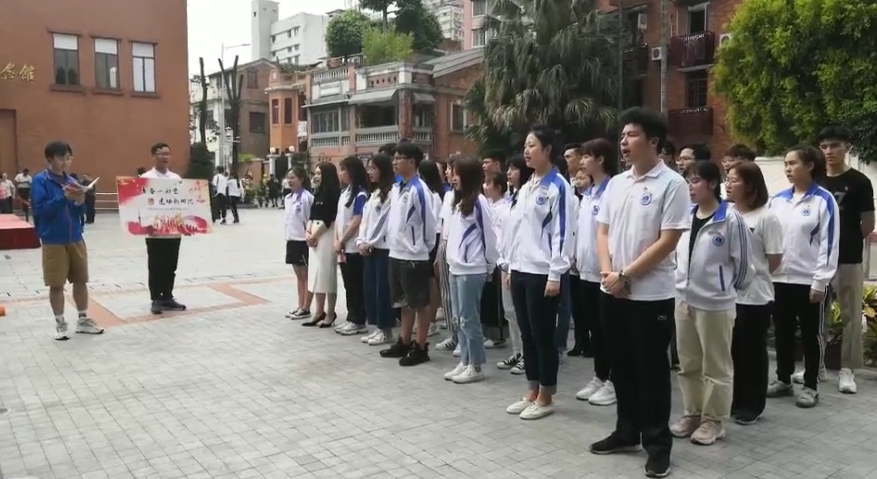 4月25日下午,在五四运动100周年之际,国际商学院在中共三大会址纪念馆举行“青春心向党·建功新时代”纪念五四运动100周年特别主题团日活动。 国际商学院学生党支部书记、团委书记张诗雨老师出席本次活动并寄语青年;共青团华南理工大学广州学院国际商学院委员会委员、2016—2018各支部团干、2018年新入团团员庄严聚会,重温百年前那段激励着代代青年奋勇前行的历史岁月。活动当天,我们在现场进行在线直播,累计3145人在线观看了直播,国际商学院广大团员青年接受了这场“沉浸式”精神洗礼。 本次特别主题团日活动设有唱国歌、“纪念五四运动100周年”主题微团课、优秀团员在团旗下演讲、重温入团誓词、为新团员佩戴团徽及寄语、齐唱团歌、参观瞻仰、朗诵《中国少年说》 、青年团员分享感悟等环节。