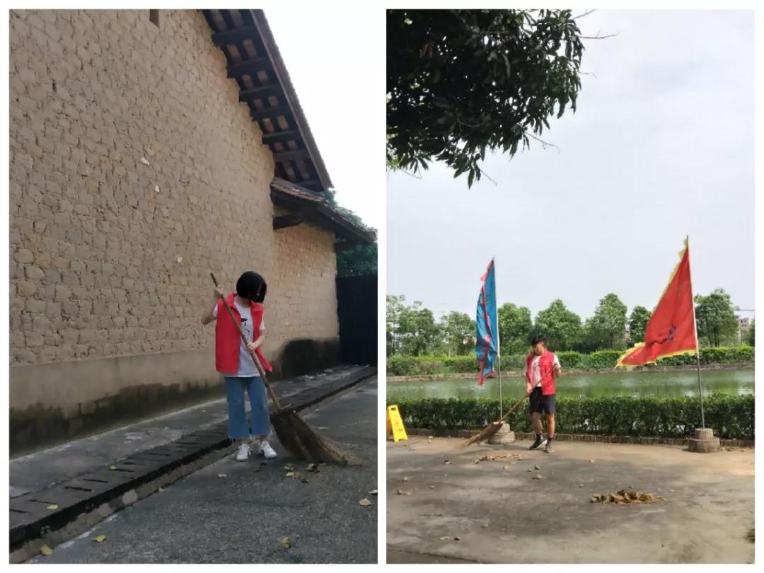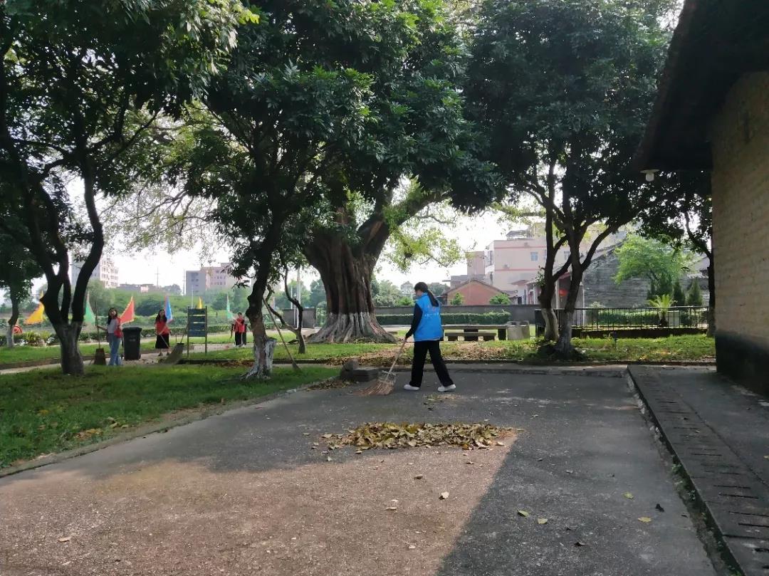 不一会儿,被落叶铺满的走道经过这位小蓝志愿者清扫后,故居又展现不一样的气息,为了使游客能更好地感受洪秀全故居,志愿者们都尽力把暴雨过后的故居恢复平日的祥静。