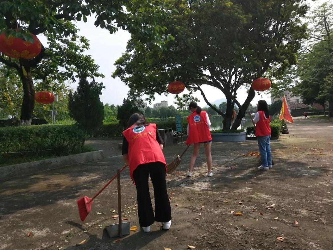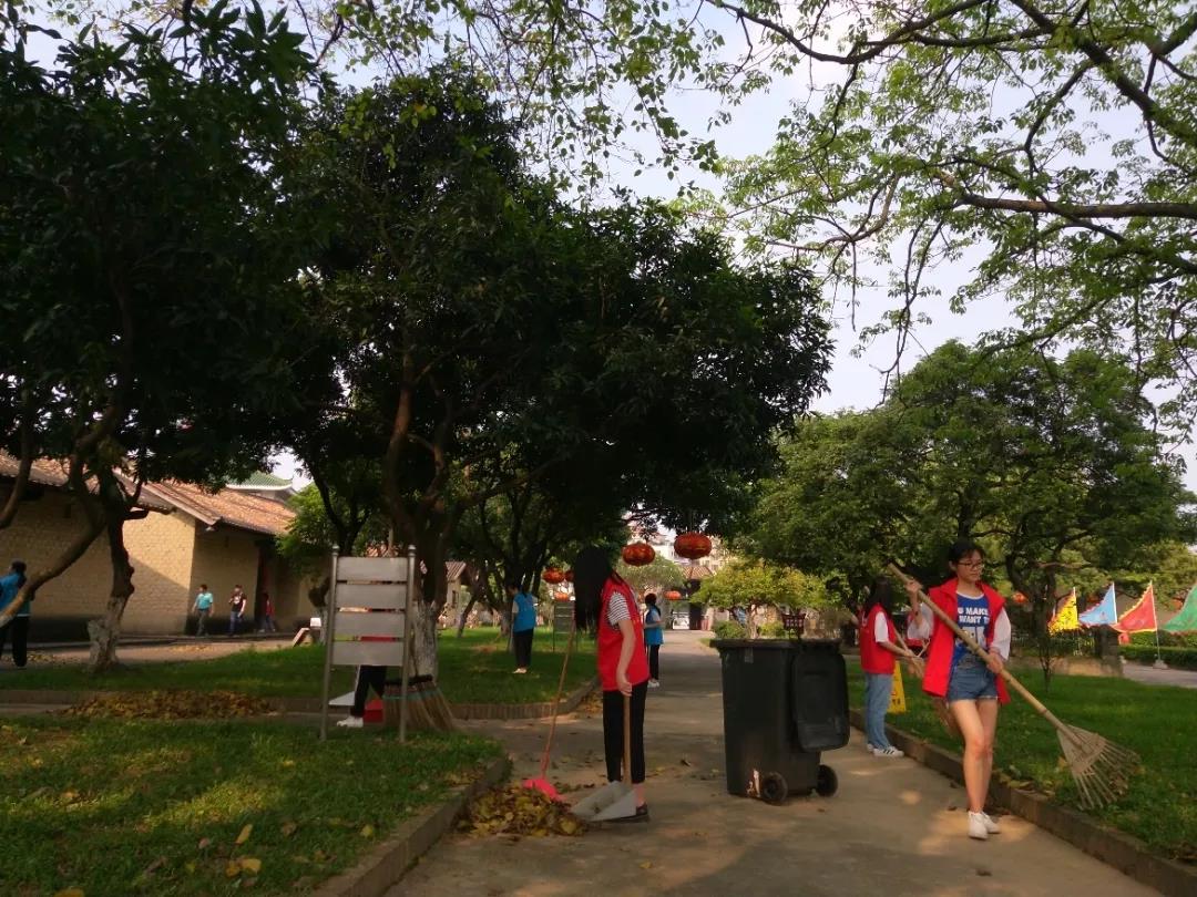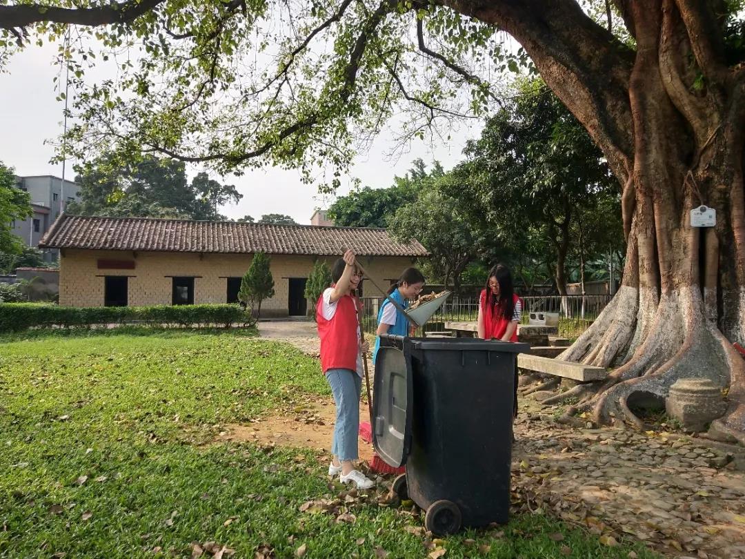 她们的加入,也使得小蓝志愿者故居活动的队伍壮大起来,这也是小红志愿者们第一次到洪秀全故居。在30℃的高温下,故居显得幽静、恬适。随着故居工作人员的简单安排后,志愿们拿起清洁工具开始了故居的清扫。但由于前几周的暴雨不断,落叶的清理也多了很多,不一会儿,志愿者们已经清理出一堆堆的落叶。