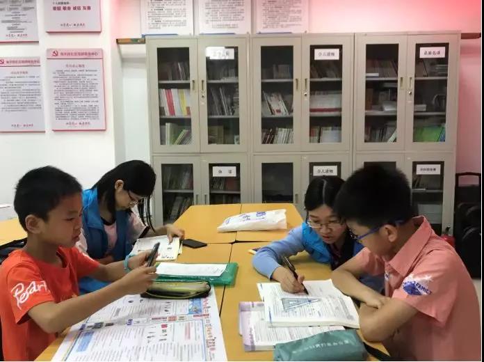随后来到的小朋友都带上了各自的作业,一笔一笔认真地写上他们思考出来的答案。而小蓝哥哥和小蓝姐姐也从他们一笔一笔认真的书写中,看到了小朋友们对知识的渴望和认真。每一位小蓝哥哥和姐姐都对小朋友们的疑惑之处进行了认真的解答,最终小朋友们也开心地完成了自己的作业。