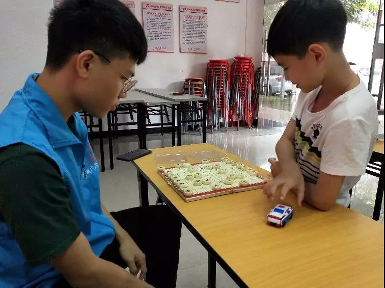 小朋友们已经完成了他们的课内作业,小蓝志愿者采用劳逸结合的方式,奖励了给她们一定的游戏时间,在这种方式下,小朋友们都非常积极配合的学习。