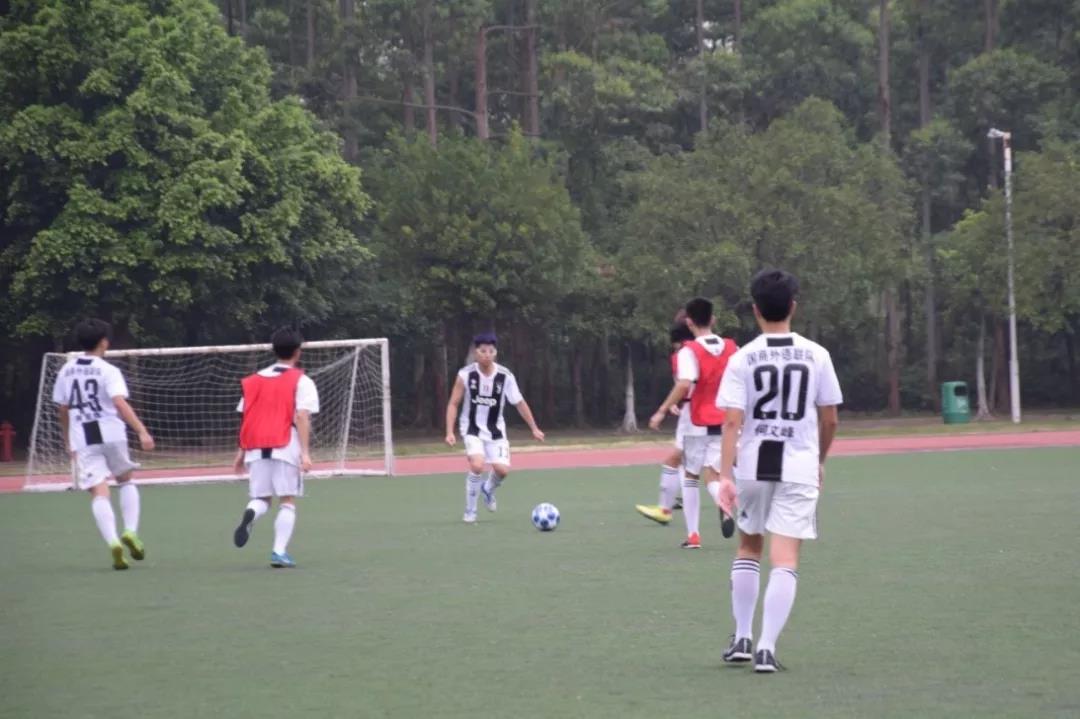 比赛随后开始,对方的进攻强度在几次攻守转换之后马上提了上来,对方进攻势头很强,几番倒球,直击球门,不得不说对方球员传球的准确度,很多传球脚都传的很到位。面对对方犀利的进攻局势,国商外语联队改以防守为主,球员回防后场,持续了一段时间后,对方球员一个长传到侧方前锋,又以二过一的进攻战术过掉我方防守后卫,这时我们的球员迅速后侧,回防到球门,守门员在扑下对方的一记射球后,对方前锋马上跟上,趁着守门员在另一侧,再起一脚,直射球门,好在我方后卫在球门前面挡住了这一球,这波精彩的防守令人拍手称赞。