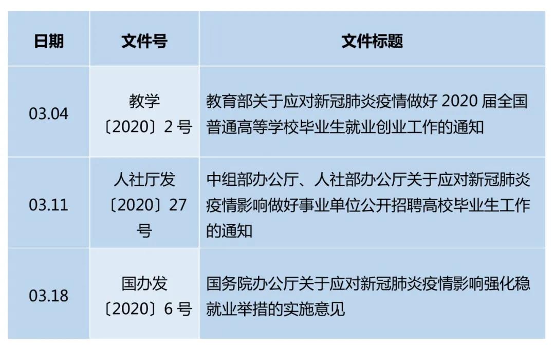 为帮助毕业生更好地了解最新政策,现将疫情防控期间与高校毕业生就业创业相关的主要政策汇总如下。