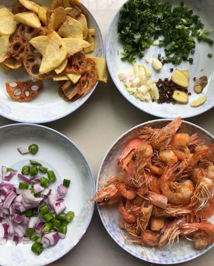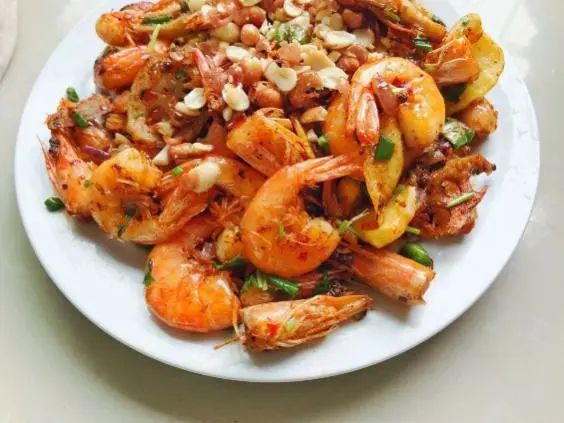 麻辣干锅虾,炸耦合,清炒油麦菜