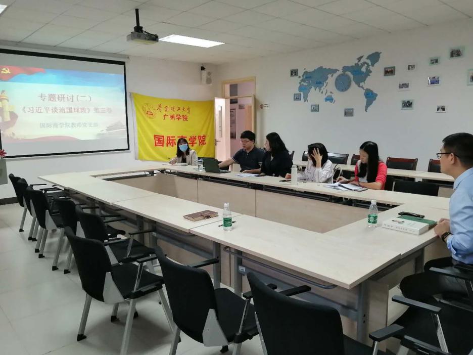 《习近平谈治国理政》第三卷出版以来,国际商学院师生党员积极学习专题内容。国际商学院党总支积极制定详细计划,采取多种方式如收集党员的学习心得体会、开展专题研讨会、开展线上知识竞答活动、社会实践--参观主题教育基地及开展征文活动,深入学习习近平新时代特色社会主义理论。10月29日,国际商学院党总支及直属党支部皆开展学习《习近平谈治国理政》第三卷专题研讨会。