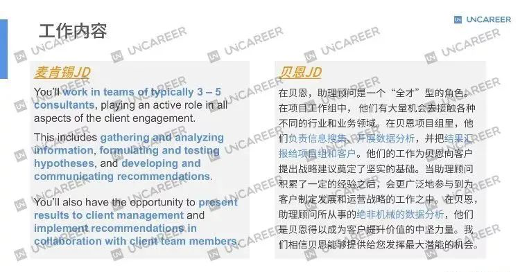 在投行、财会、咨询的实习,同样以数字来说明结果。