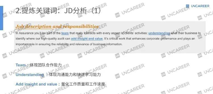 Understanding,不仅包含沟通能力,也包括快速学习能力。四大的审计是风险导向的,也就是说需要先通过和客户沟通理解今年和上一年度的业务的变化,找出可能的风险点并进行审计。而且会计准则变化很快,因此四大非常注重学生的学习能力。