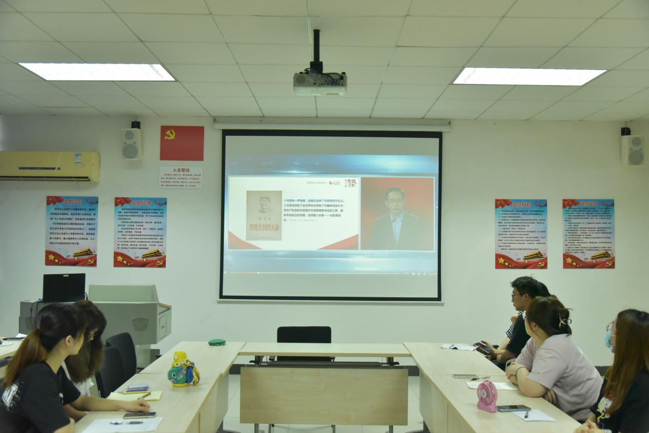 本网讯(记者 徐迟)为了顺应建党100周年的新形势,深入学习贯彻习近平总书记在党史学习教育动员大会上的重要讲话精神,确保党员质量,端正入党动机,提高党员发展对象的政治思想觉悟。2021年5月10日晚17:40我院学生党支部在课室A6-505组织进行党史专题学习会议,党员发展对象全体参加,并邀请学生党支部书记庄祉祎老师进行“经典红歌音乐中的党史历程”专题讲座和“同上新中国史思政大课”专题党史学习。