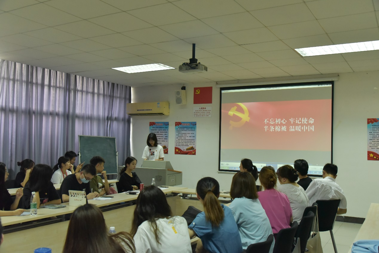 她分享的主题是解放战争时期半条棉被的故事,通过电影片段分享讲述了解放战争时期女红军与老百姓同盖一条棉被军民同心的真实事迹。并谈到我们共产党人要以人民利益至上,实实在在的为人民着想,才能赢得人民的信任和支持拥戴。