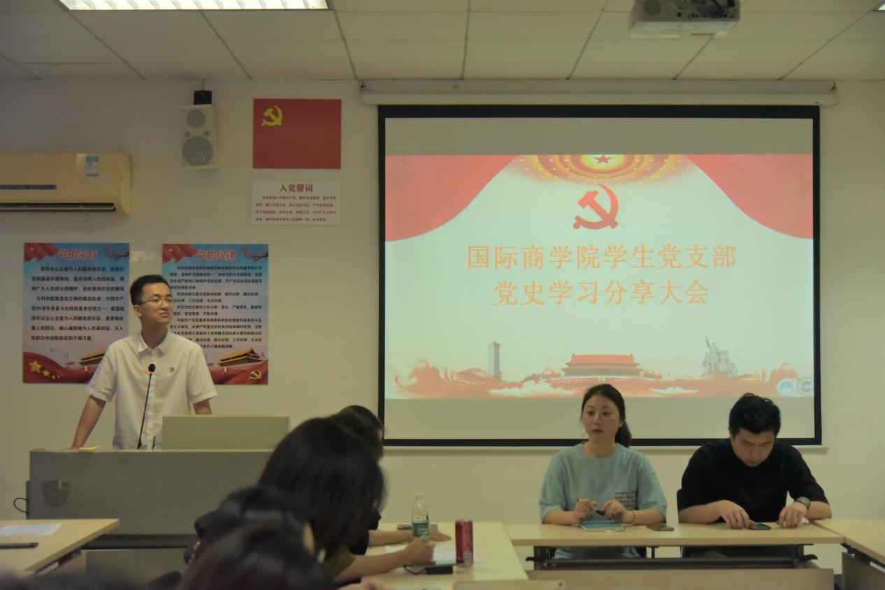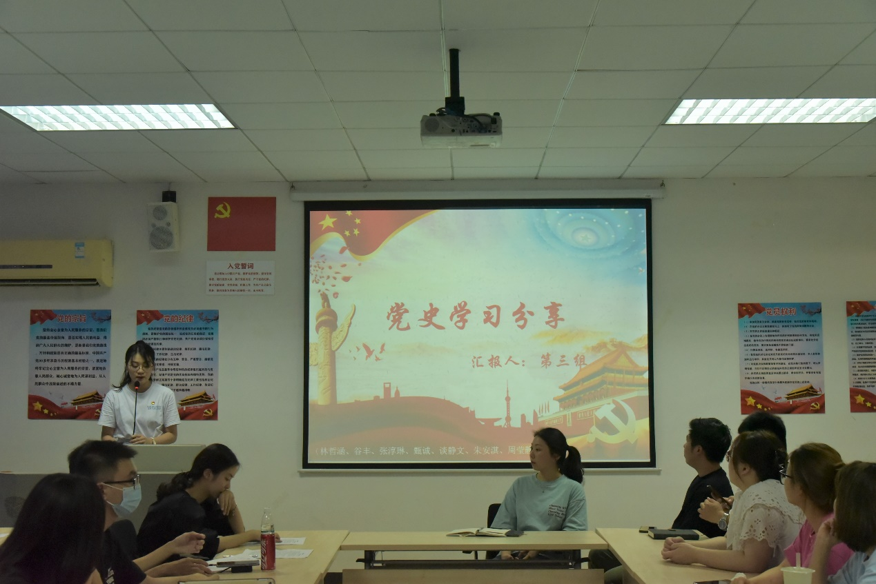世纪征程波澜壮阔,百年初心历久弥坚。为庆祝中国共产党成立100周年,深入学习贯彻习近平新时代中国特色社会主义思想,进一步推进党史学习教育工作深入开展,引导发展对象学党史、悟思想、办实事、开新局。2021年5月13日下午17:40分,中共广州城市理工学院国际商学院党史学习分享大会在A6-505教室顺利召开,国际商学院学生党支部书记庄祉祎、副书记杨海圳及支部委员甄诚、陈乐旖出席了本次会议,国际商学院全体学生党员参加了此次会议。