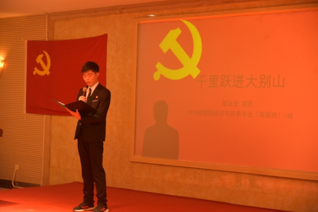 第九位选手是来自2018级国贸双语的陆泳安同志他演讲的主题是“千里挺进大别山”