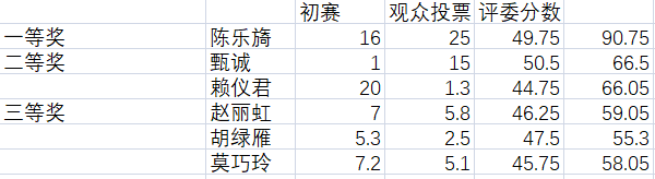 最后,经过线上投票、现场观众投票以及评委打分汇总.