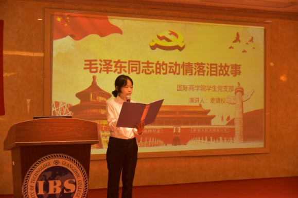 第五位选手是来自2018级投资学的麦靖仪同志她演讲的主题是“毛泽东的动情落泪故事”