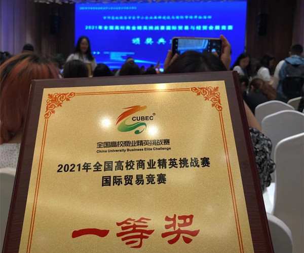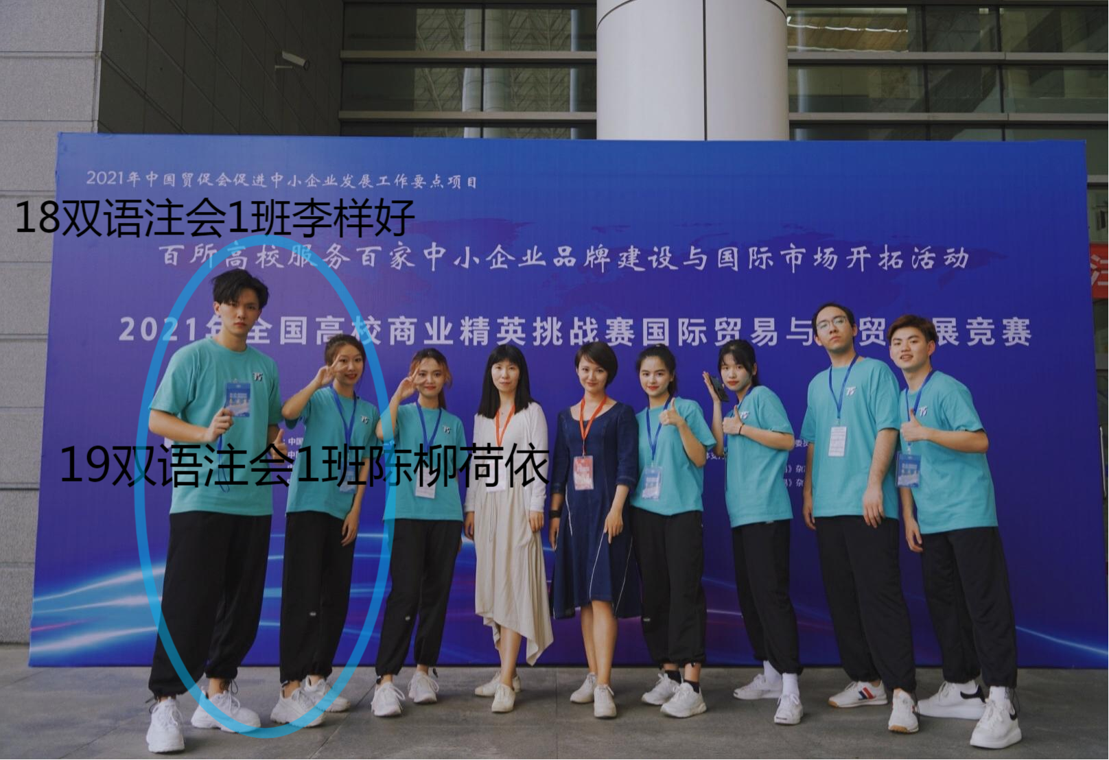 本网讯(记者 杨海圳)2021年5月6日至5月10日,在浙江宁波国际会展中心举行了“2021年全国高校商业精英挑战赛国际贸易竞赛”。我院学生2018级双语注会1班李样好、2019级双语注会1班陈柳荷依与6名经济学院学生共同组队,在两位老师的带领下前往宁波参赛。经过老师的悉心指导和参赛学生的奋力拼搏,该代表队荣获全国总决赛一等奖的好成绩。