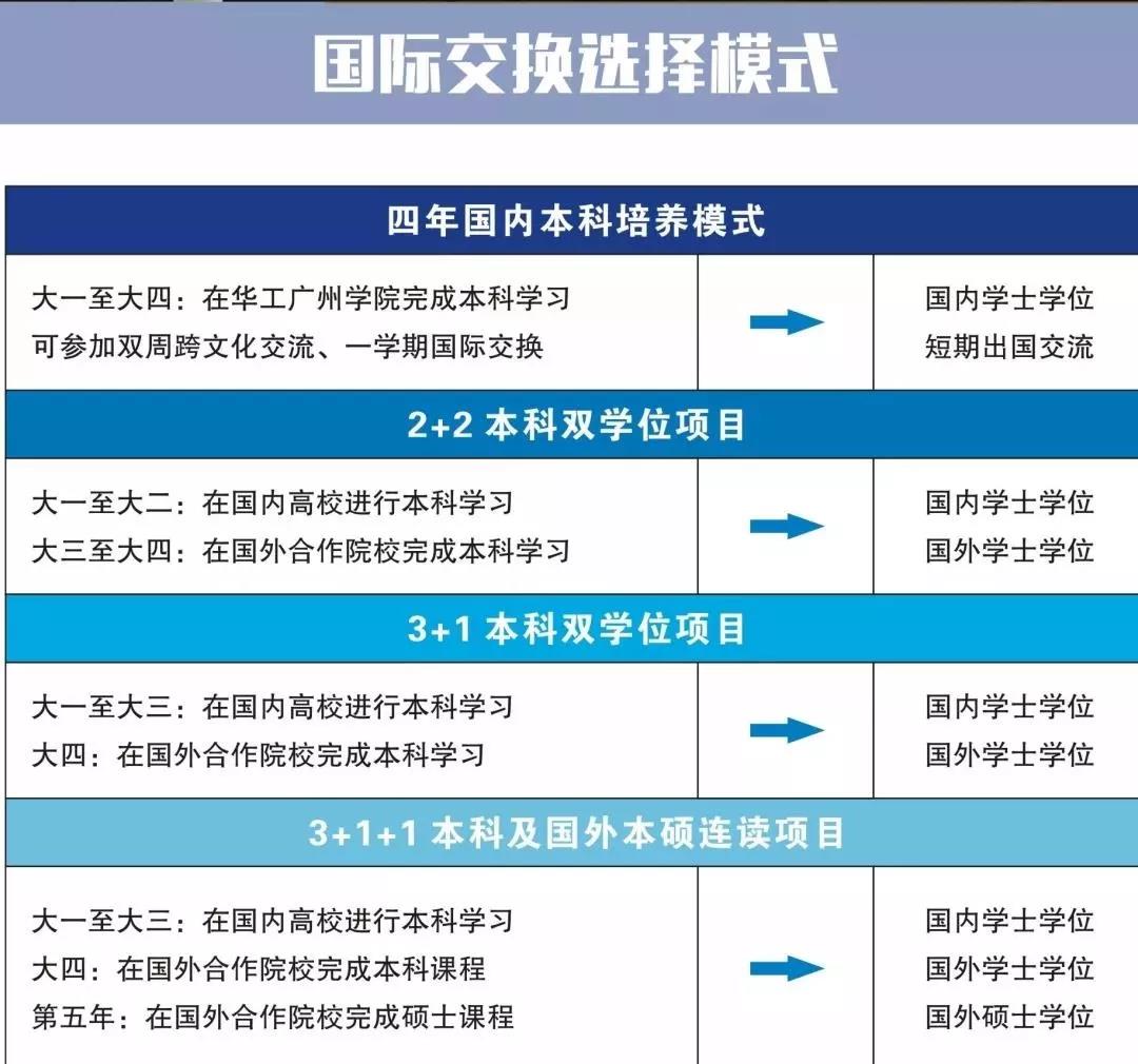 与澳大利亚科廷大学、英国西英格兰大学、美国中西州立大学、加拿大圣玛丽大学等合作院校开展的“2+2、或3+1”学分互认项目或“3+1+1”本硕连读项目”。