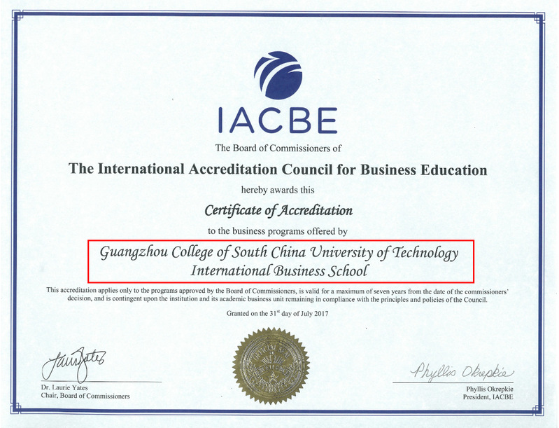 国际商学院获认证的专业请点击https://iacbe.org/memberpdf/GuangzhouCollegeSCUT.pdf
