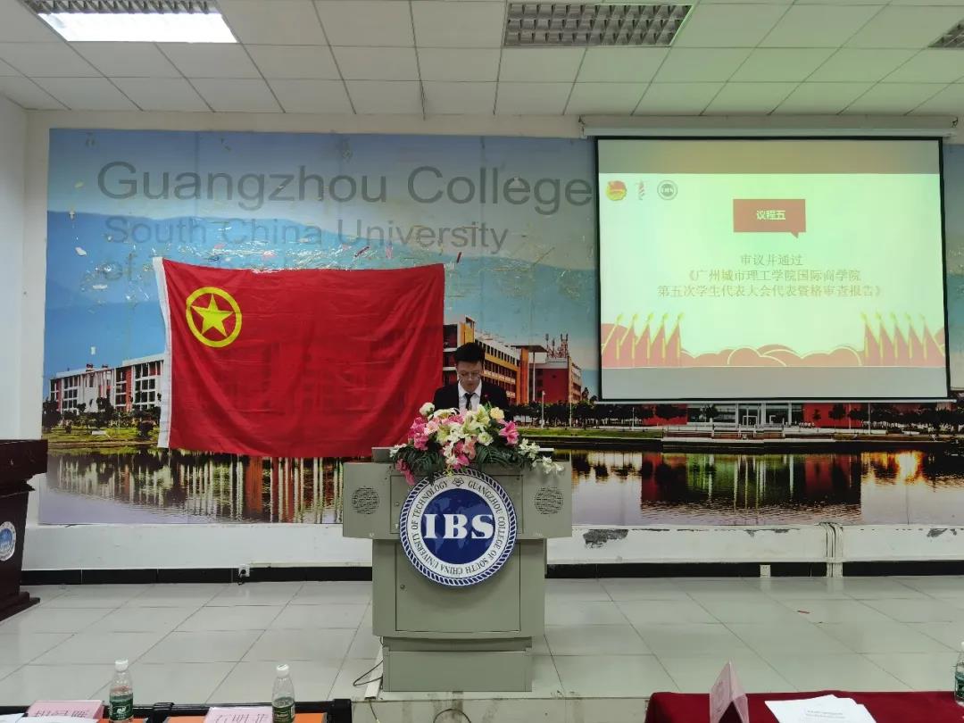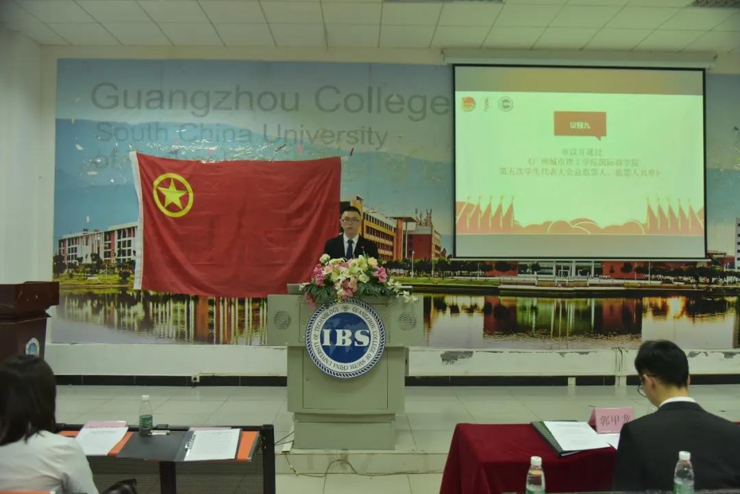 大会审议并通过了郭甲龙作的《广州城市理工学院国际商学院第五次学生代表大会代表资格审查报告》