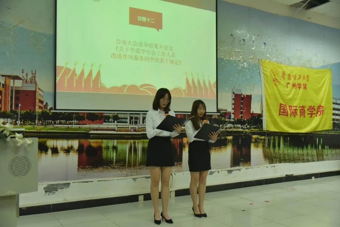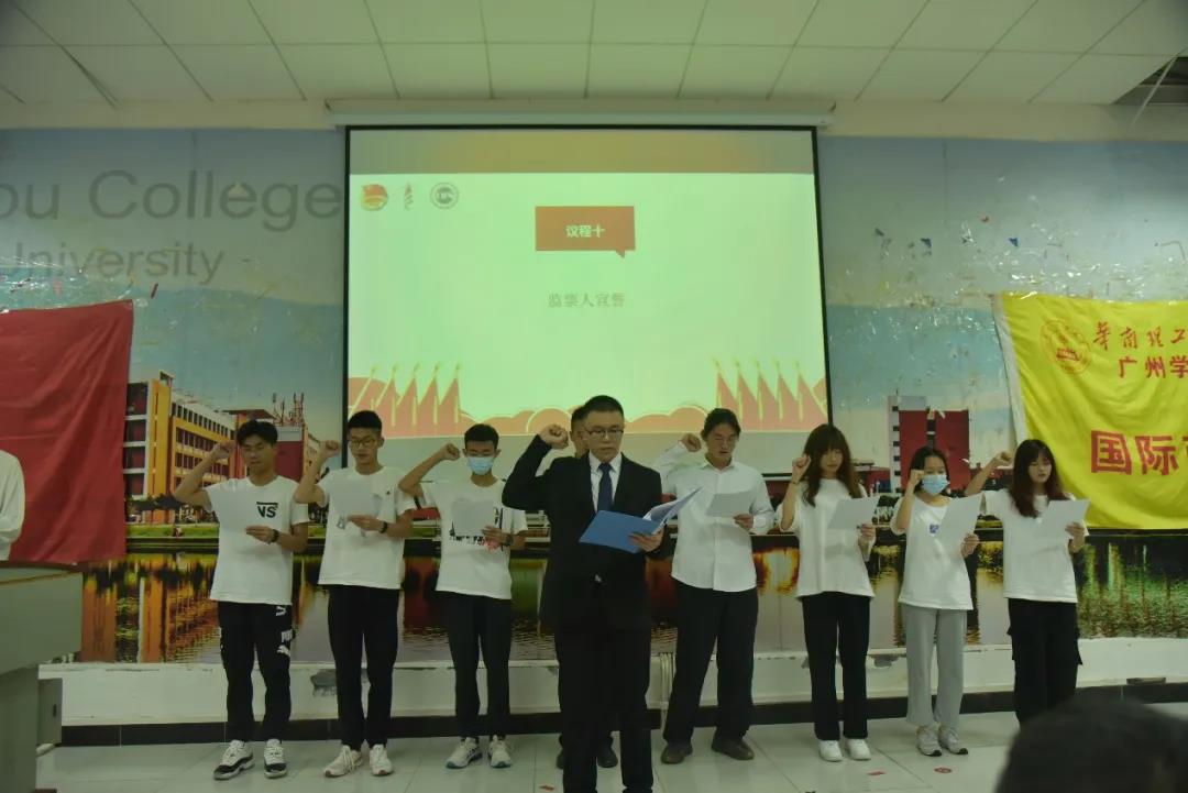 由王荣凯公布大会选举结果,胡绿雁、石明菲当选为广州城市理工学院国际商学院第五届学生会主席团成员