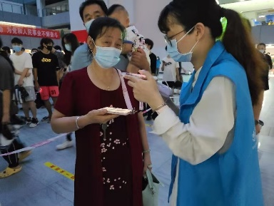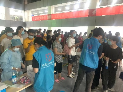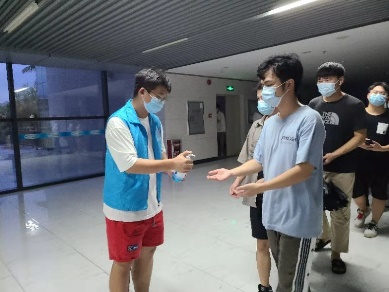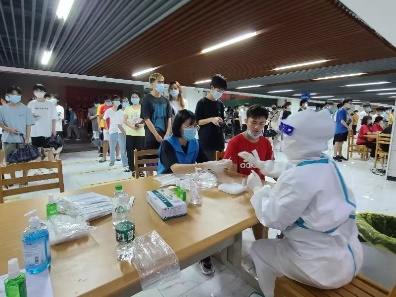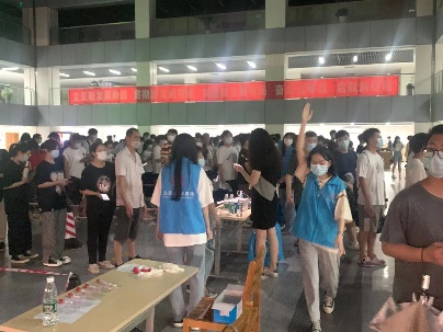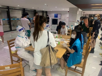 本网讯(记者 董昱宁)为积极配合全省疫情防控情况,保障广大在校师生的生命健康安全,切实做好校园疫情防控工作,6月25日,国际商学院所有师生按要求进行了第二次核酸检测。我院学生党员响应党中央关于开展“我为群众办实事”活动号召,积极投身疫情防控工作。党员志愿者们冲锋在前,“疫”无反顾,秉承“奉献、有爱、互助、进步”的志愿精神积极投身到核酸检测志愿服务活动中。