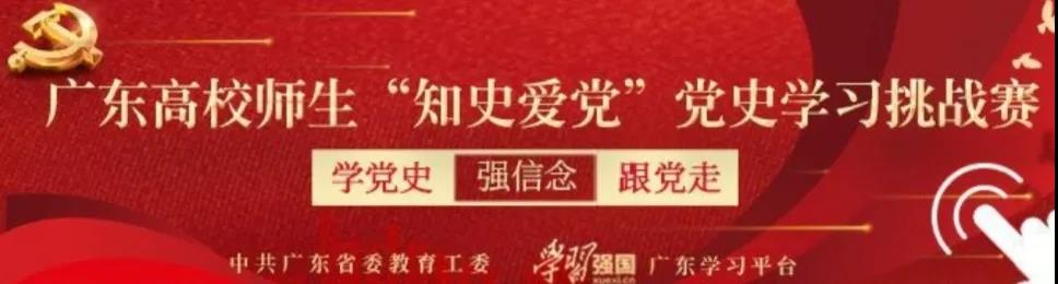 为深入学习习近平新时代中国特色社会主义思想,贯彻落实习近平总书记在党史学习教育动员大会上的讲话精神和在庆祝中国共产党成100周年大会上的讲话精神,践行学史明理、学史增信、学史崇德、学史力行的要求,引领广大师生深入学党史、强信念、跟党走,进一步推动党史学习教育走深走实,以优异成绩庆祝党的百年华诞,省委教育工委结合高校党史学习教育工作安排,与“学习强国”广东学习平台合作,组织开展全省高校党员师生“知史爱党”学习挑战赛,