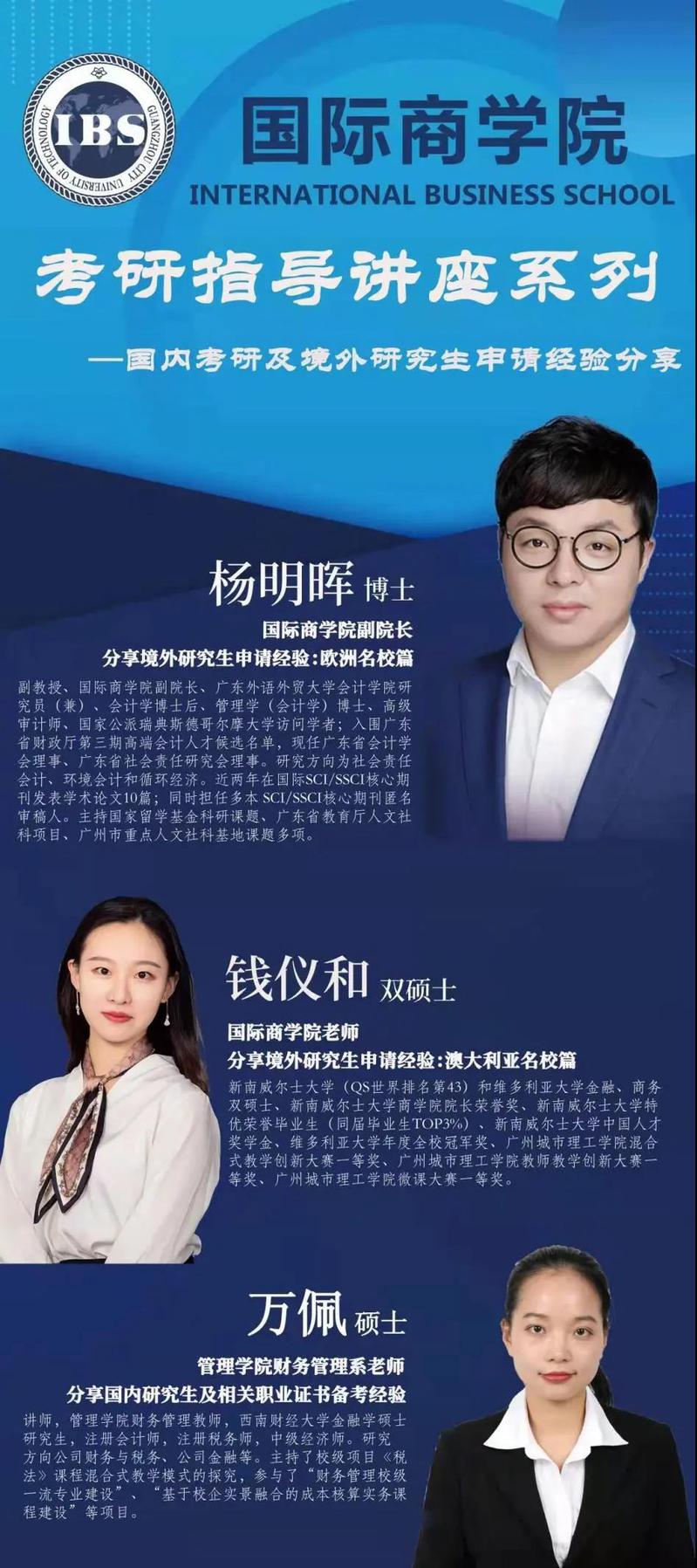 一、讲座主题:国际商学院考研指导讲座系列之 “国内考研及境外研究生申请经验分享”