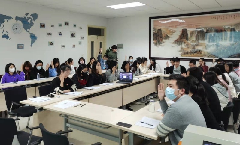 本网讯(记者 陈奕谕)党员是党的肌体的细胞和党的活动的主体,做好发展党员工作是保持党的先进性和纯洁性的现实需要。2021年11月11日下午,国际商学院学生党支部于A6-505举行第二十九期专升本发展对象表决会议。此次会议采用线上会议与线下相结合的方式进行,学生党支部书记庄祉祎、副书记杨海圳、辅导员黄少芬以及学生党员共52人参加本次会议。