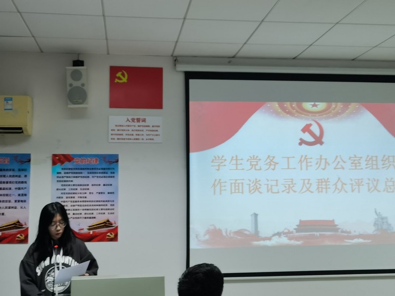 会议第一项,由学生党务工作办公室组织部作面谈记录总结和群众评议情况汇报。