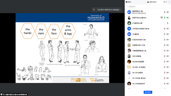 英国哈德斯菲尔德大学线上学术讲座现场(黄卉菁提供)