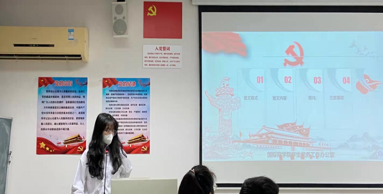 为培养干事们的工作能力,学生党务工作办公室三个部门负责人分别进行了各部门的入党流程以及材料规范、行为规范和礼仪跟借用问题、推文撰写的培训,加强了各部门之间的认识,进一步了解了彼此的工作性质,为学生党务工作办公室将来的发展奠定了工作基础。