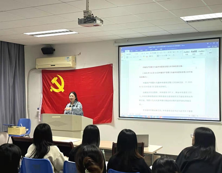 庄祉祎带领全体党员学习习近平总书记在党的十九届六中全会上的重要的讲话以及《中共中央关于党的百年奋斗重大成就和历史经验的决议》,并观看十九届六中全会新闻发布会。全会充分肯定党的十九届五中全会以来中央政治局的工作。大会强调指出,面对严峻形势和复杂任务,以习近平同志为核心的党中央,统筹中华民族伟大复兴战略全局和世界百年未有之大变局,顺应时代大势,把握战略主动。会上,庄祉祎对六中全会精神作的系统阐述和讲解,加深了参会人员对六中全会精神的认知和感悟,为宣传贯彻党的十九届六中全会精神打下坚实的基础。