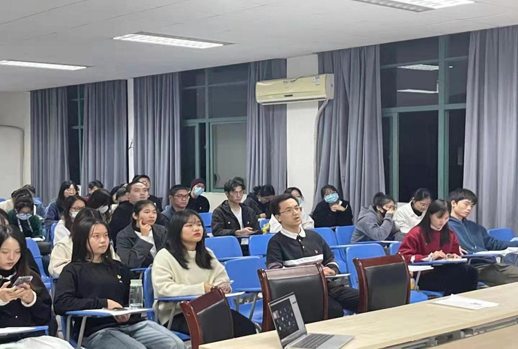 本网讯(记者 黄智恩)为推动学院党建工作再上新台阶,引导广大同学深入学习全会精神,切实增强国际商学院学生党员及积极分子等同志的思想自觉和行动自觉。11月24日,广州城市理工学院国际商学院学生党支部在A6-501召开十九届六中全会精神专题学习会。教师党员黄增光出席本次会议,党员、预备党员共63人参与了本次会议。会议由学生党支部书记庄祉祎担任主讲人。