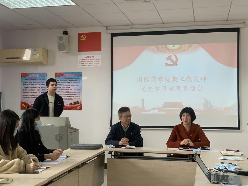 本网讯(记者 杨海圳 胡靖姗)为深入学习贯彻习近平总书记重要指示精神及中央召开的党史学习教育总结会议精神,深刻理解和把握在全党开展党史学习教育的成功经验,12月31日下午,国际商学院教工党支部在A6-505举行党史学习教育总结会。党总支书记刘佳、教工党支部书记吴立广及相关同志到会,民主党派杨明晖副院长列席。