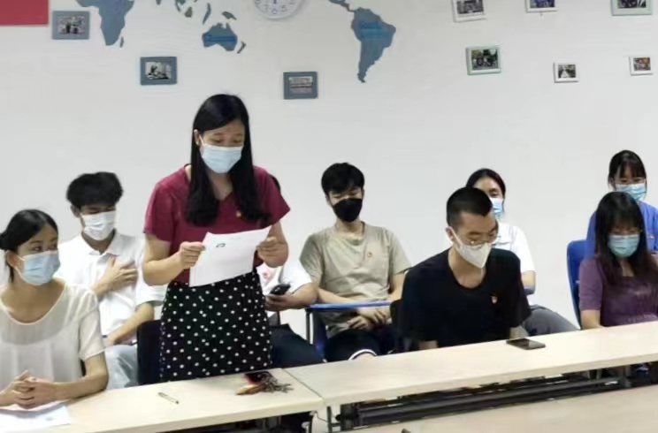 本网讯(记者 李兆凤)为全面贯彻落实新时代党的建设要求,做好预备党员的确定和考察工作,加强党的建设。2022年5月26日下午,国际商学院学生第一党支部在学校A6-505召开了第三十期接收预备党员会议,讨论表决关于潘政等5名发展对象转为预备党员事宜。国际商学院学生第一党支部书记庄祉祎、党总支宣传委员黄凤娟、党总支统战委员江艳、学生第一党支部全体正式党员、预备党员及发展对象线上线下共46人参会,会议由庄祉祎老师主持。