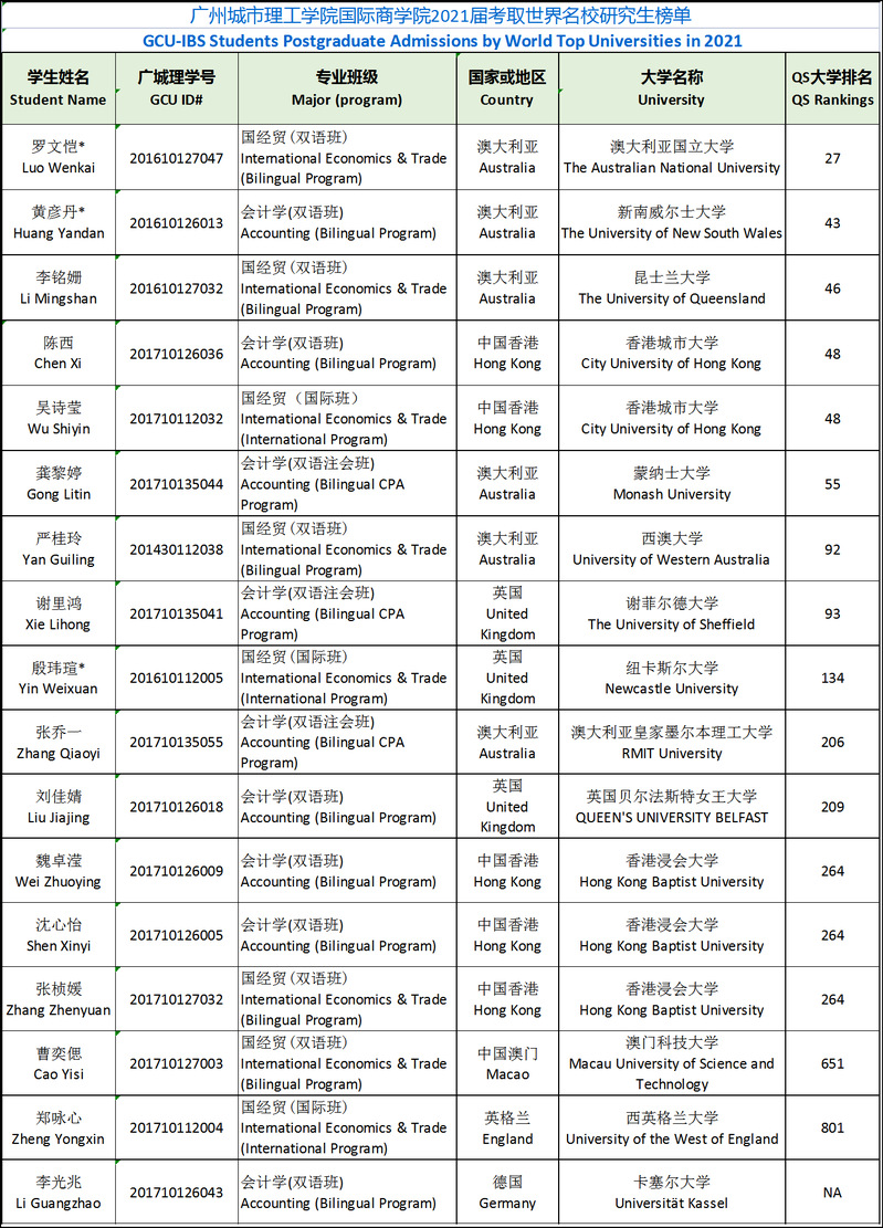 2021届考取世界名校研究生榜单