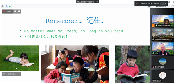 本网讯(记者 冯慧雅 谭沛铭)“同学们最近在阅读什么书籍?”6月7日下午,我校客座教授、来自荷兰NHL-Stenden(北方莱瓦顿-斯坦德大学)的Nico Booij以提问的方式开启了“腹有诗书气自华”线上讲座的序幕。本场讲座由教务处为我校对口帮扶的连南寨南中心学校师生组织的首场讲座,旨在开拓学生视野、激发学生阅读兴趣,为学生增加有趣的课外知识。