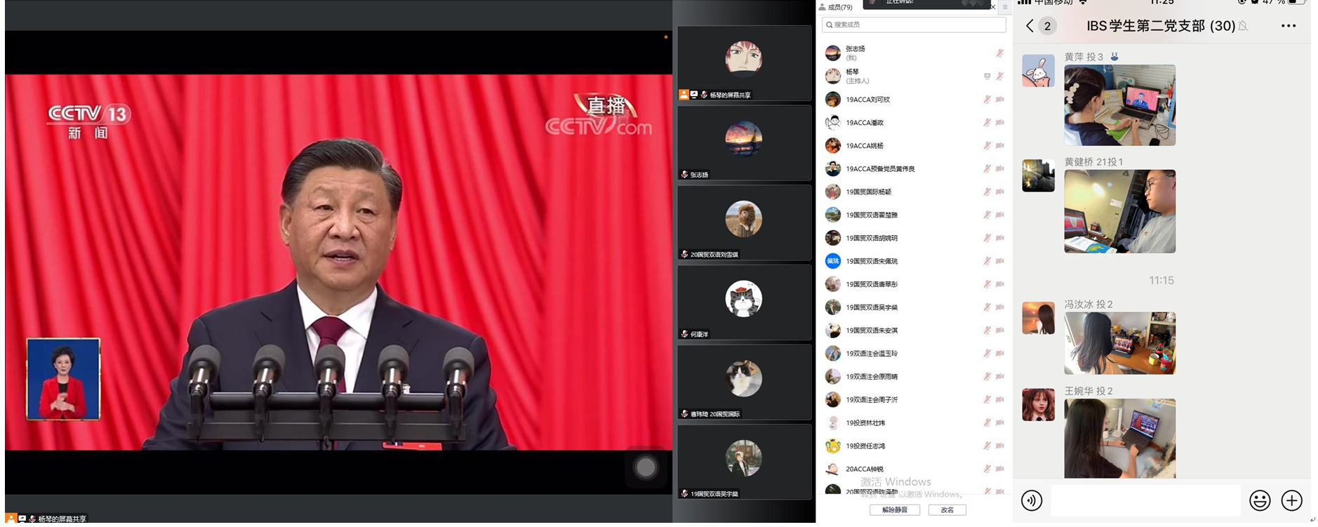 本网讯(记者 黄凤娟)10月16日上午,中国共产党第二十次全国代表大会在北京召开。国际商学院党总支高度重视、提前部署,安排线上会场,党总支、各党支部以不同形式,通过线上集中和线下分散方式观看开幕式直播,学生党员们的同宿舍团员和积极分子也主动参与,一同收看大会盛况,聆听习近平总书记代表十九届中央委员会向大会所作的报告。